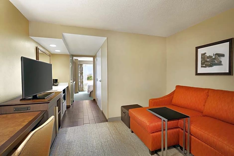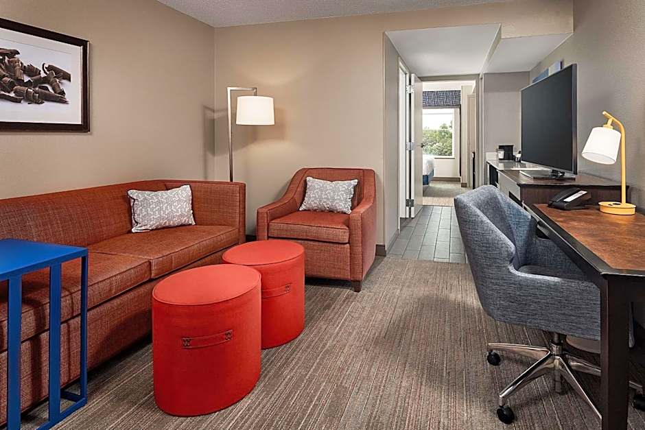 Two room suite with sofa-sleeper in common living area. Features: Refrigerator, Microwave, Wet Bar, Flat-screen HDTV, Free WiFi, Hot Breakfast Included coffeemaker, iron and board and hairdryer.